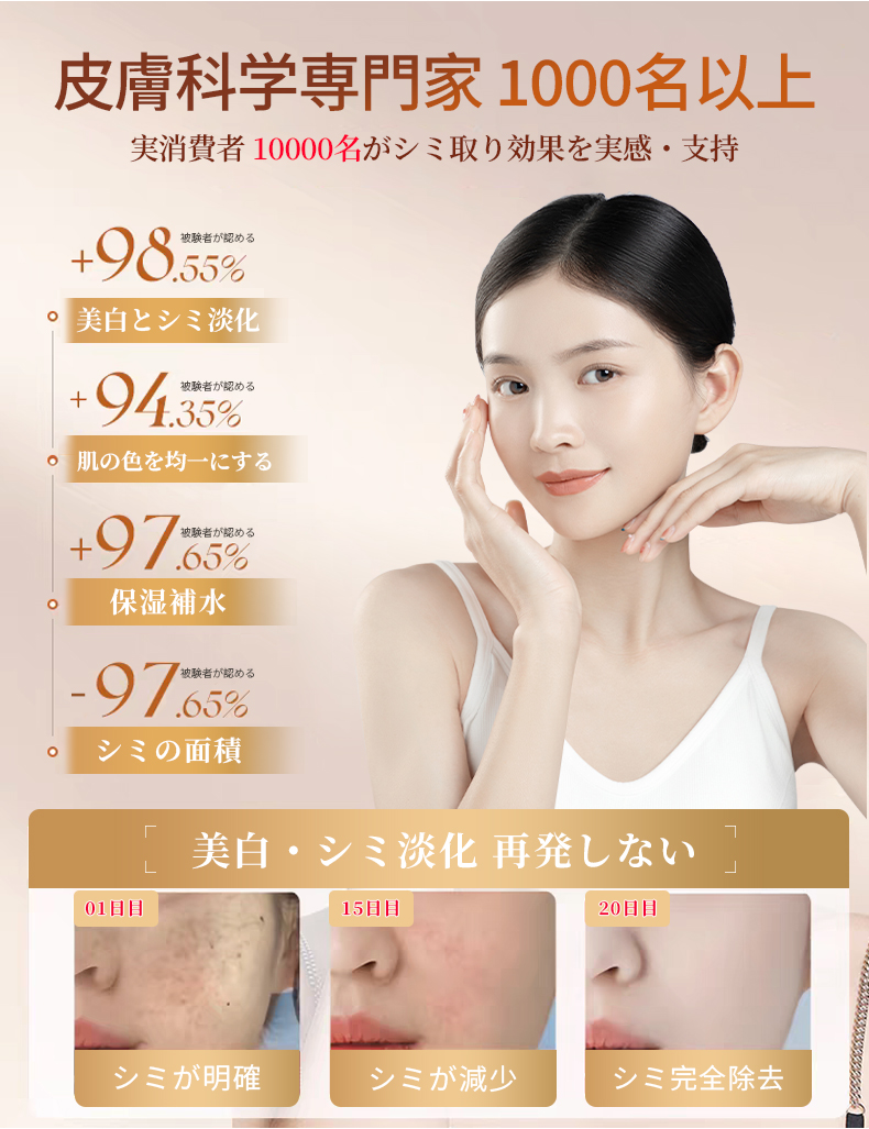 肌のダメージを修復し、明るさを高め、シミを消す効果を実現します。
