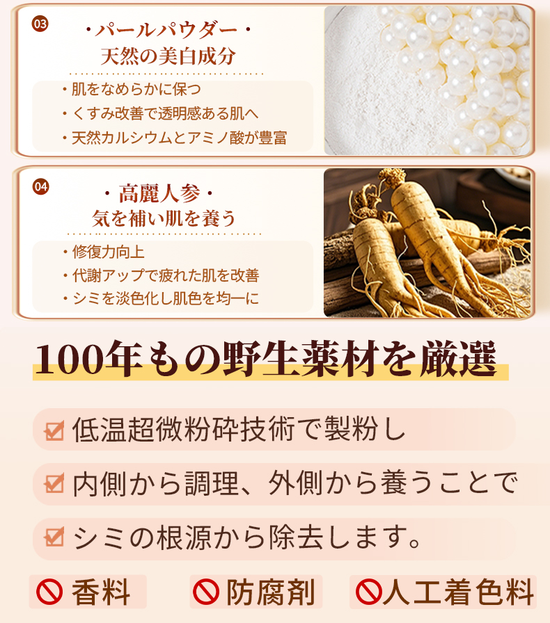 百年の漢方配合、魔法のシミ取りパウダー